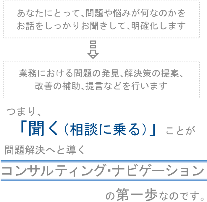 聞く + 調査 + 提案 = 問題の解決